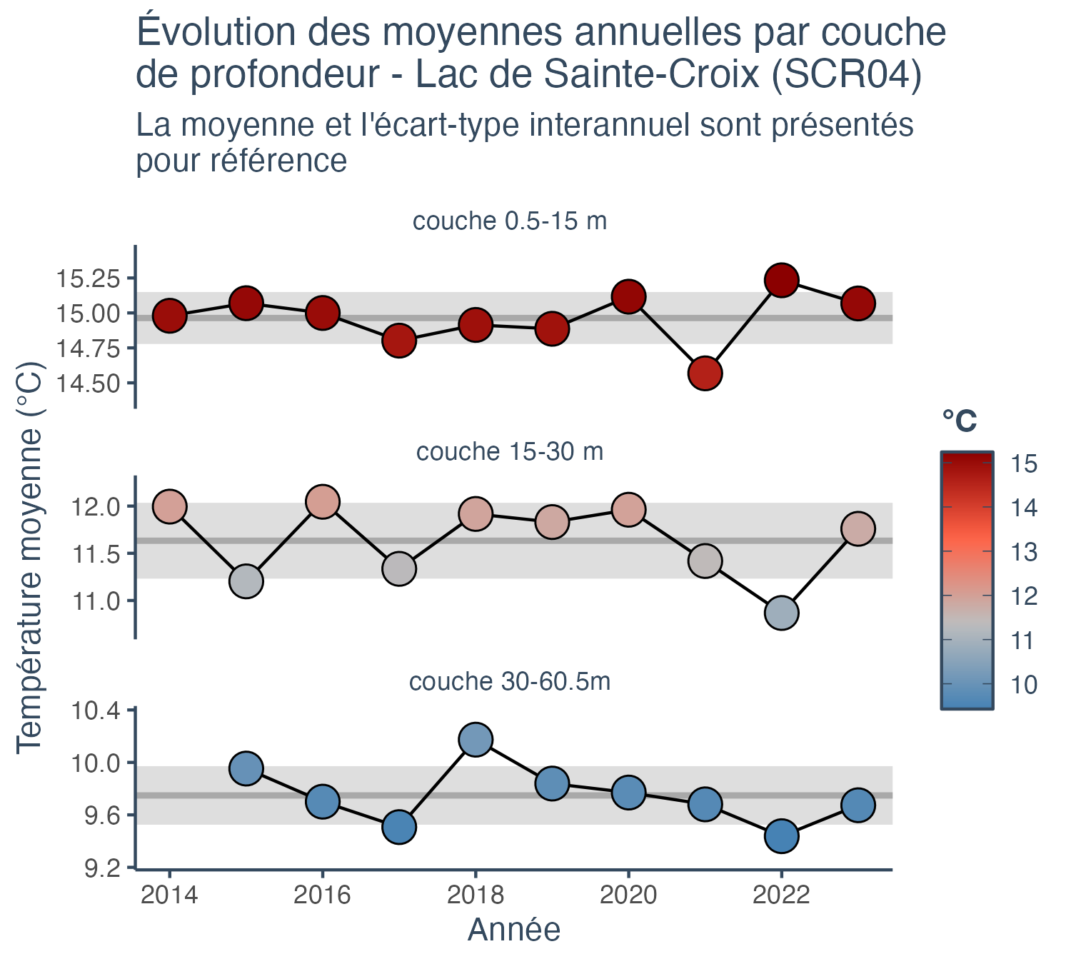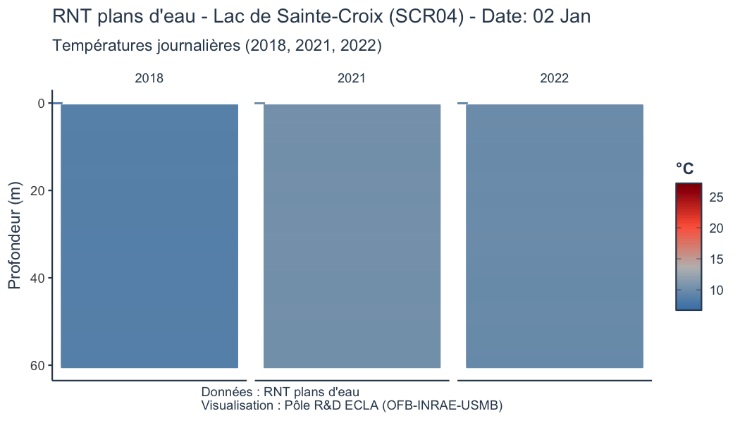 La température est un paramètre clé fortement corrélé au fonctionnement (stratification, brassage) et à la disponibilité en habitats (températures seuils, solubilité de l’oxygène) des plans d’eau. Il s’agit d’une donnée de base pour les gestionnaires et les scientifiques pour comprendre l’état d’une masse d’eau.