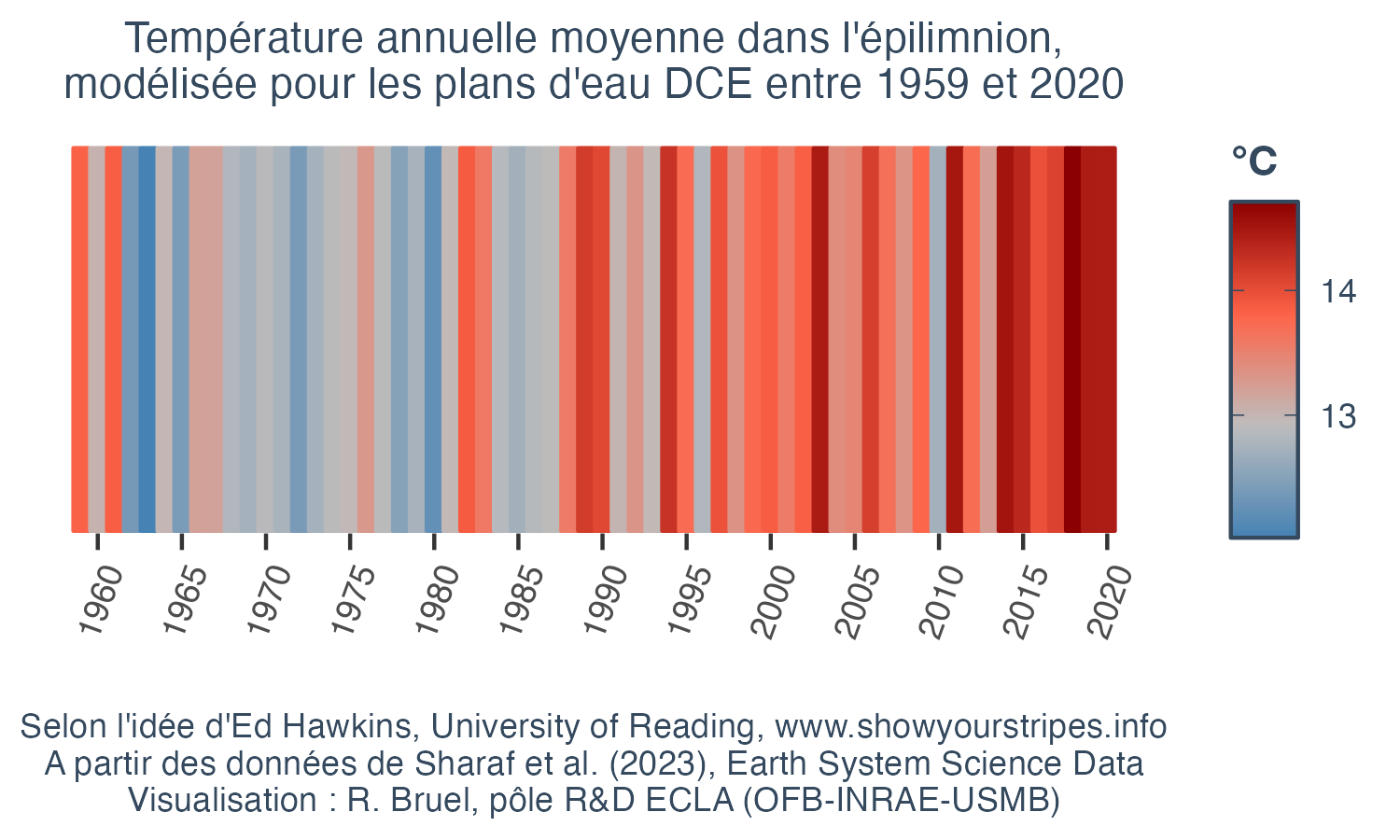 Les plans d’eau sont des écosystèmes particuliers qui rendent nombreux services écosystémiques (réserve et refuge de biodiversité, ressource en eau potable, production hydroélectrique, tourisme, pêche, etc.). Leur fonctionnement et leur état est étroitement lié au climat et aux activités anthropiques. Dans un contexte de changement climatique, il est essentiel de pouvoir caractériser la réponse des plans d’eau (amplitude, direction) afin d'anticiper leur trajectoire.